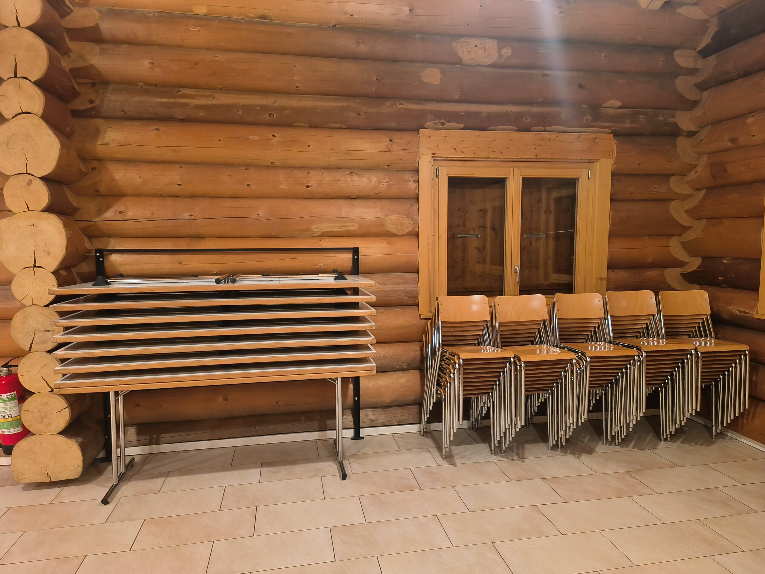 Capacité : 45 personnes maximum (30 chaises pour l’intérieur, 30 chaises pour l’extérieur)